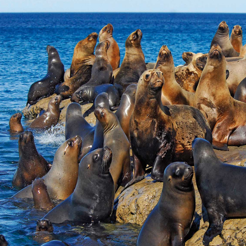 DAY 2: Breakfast. We leave from Puerto Madryn in a northerly direction until we arrive at the control post where the entrance to the area is paid and we begin to explore and discover the charms of the Peninsula, its landscape, its flora and its fauna. Then we enter the Isthmus Carlos Ameghino which is a narrow strip of land that connects the Peninsula with the continent. The first stop we made is at the "Carlos Ameghino Interpretation Center", which provides information on the Peninsula's ecosystem, the marine fauna species that are concentrated in large settlements throughout the Peninsula, the flora and history of the region. We continue the journey until we reach Puerto Pirámides, the only tourist village on the Peninsula and the only place allowed to observe wildlife on board. Its beaches are protected by cliffs (fences) that resemble pyramids, hence its name. In the village we make a stop of approximately 2 hours to embark on the unforgettable experience of navigating the waters of the Golfo Nuevo. The navigations are carried out in vessels of different capacities, from 5 to 70 passengers, and last approximately one to two hours.
